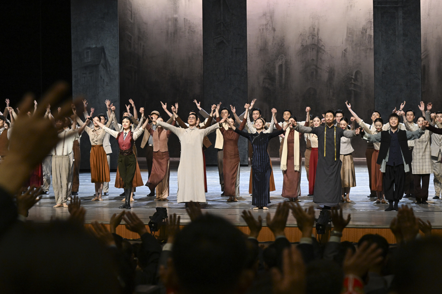 舞剧《永不消逝的电波》谢幕,台上台下热情挥手。 本报记者 张驰 摄